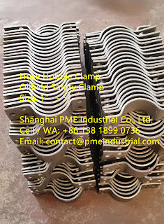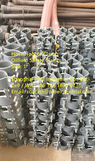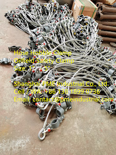 Using 4 bolts hobble clamp and chain or steel cable, PME high pressure hose safety clamps assembly features various size referring the outside diameter of the hoses and pipelines.
